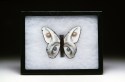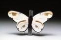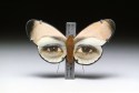 In Latin, Sensum/Sensorium translates loosely as “that which is sensed and the apparatus through which we sense it”. Latin is used because of its relationship to scientific taxonomy. In this body of work I use photographic images of the human sensory organs such as eyes, ears, and hands. They are images of action–watching, caressing, grabbing, listening. These hand-painted photographs are then fashioned into butterflies, moths and beetles that are to read as scientific specimens, which present themselves for close examination. It is important that they be recognized as specimens and not as romanticized depictions of “nature”. Thus they are pinned, indicating that they function as objects for scrutiny. In so doing, human interaction, mediated by the senses, is also scrutinized.